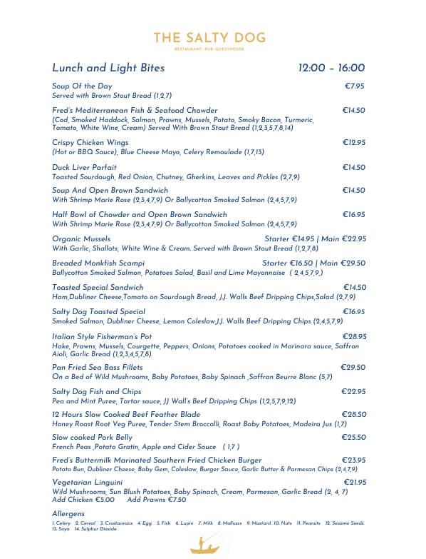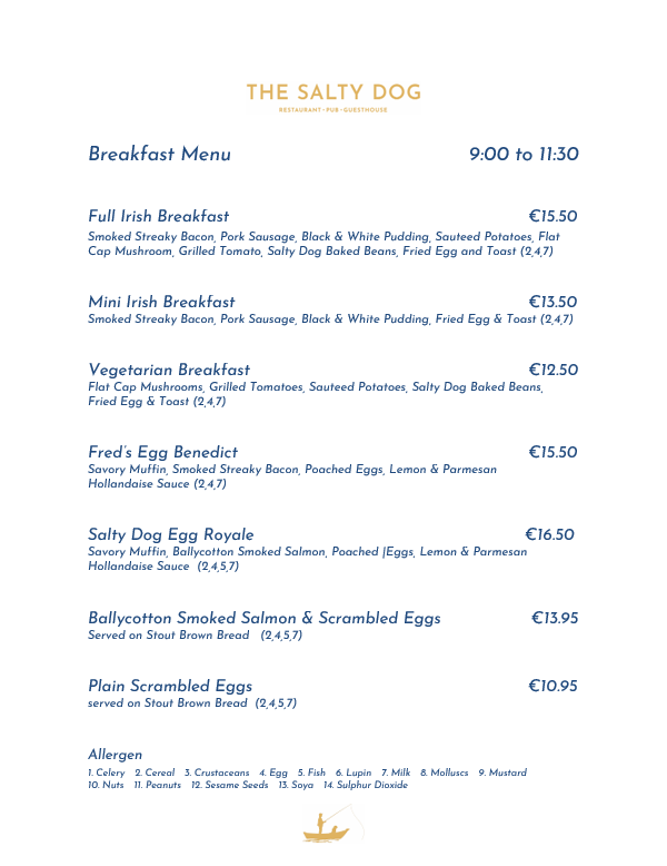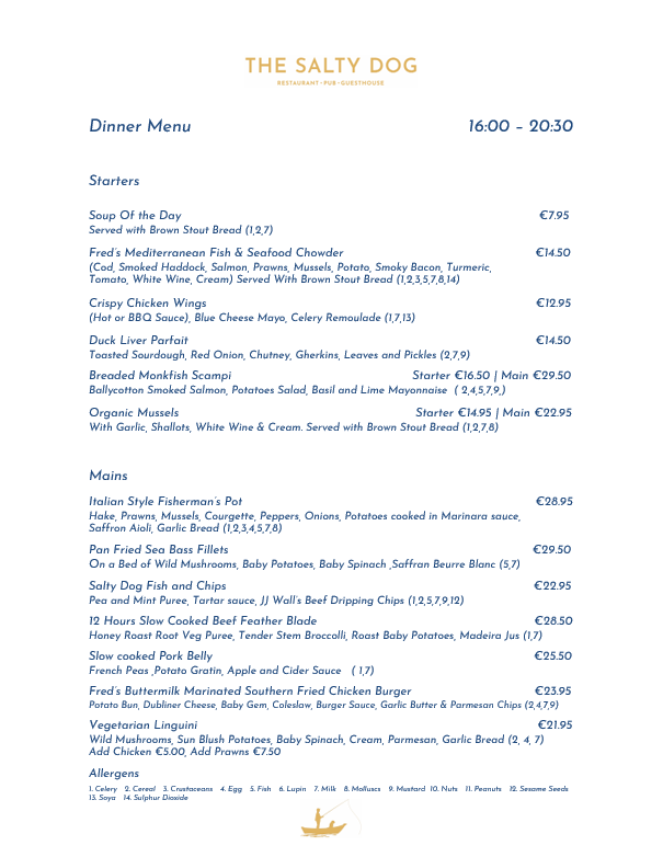 Our kitchen celebrates the very best of Ballycotton’s daily catch – from chowder and cod dogs to seafood platters and salty caramel desserts. Honest cooking, coastal flavours, and the kind of food worth slowing down for.